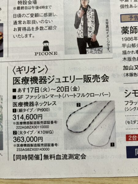 「健康ジュエリー販売会&無料血流測定会」2/20(金)まで開催しております。